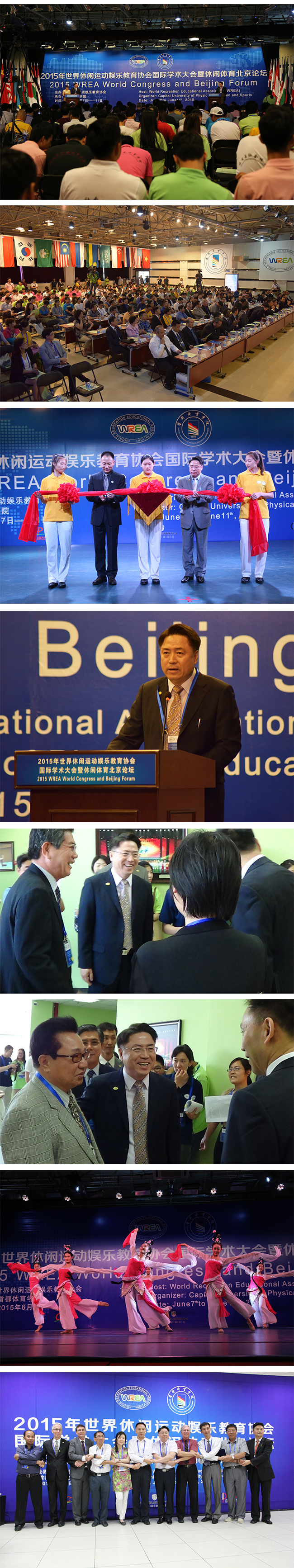 “2015世界休闲运动娱乐教育协会国际学术大会曁休闲体育北京论坛”于2015年6月7日-11日在我校举行。本次大会由世界休闲运动娱乐教育协会(World Recreation Educational Association)主办,由我校承办。大会主题是“全球化的变革:运动休闲的机遇与发展”。来自22个国家和地区的60多所高校的专家学者参会,共收到投稿论文200余篇。专家、学者围绕“运动休闲与健康”、“运动休闲与旅游”、“运动休闲与城市发展”、“运动休闲与体育产业”、“运动休闲与生态文明”、“运动休闲与文化教育”等6大专题通过主报告、专题报告、墙报、青年论坛等方式展开学术交流与研讨。