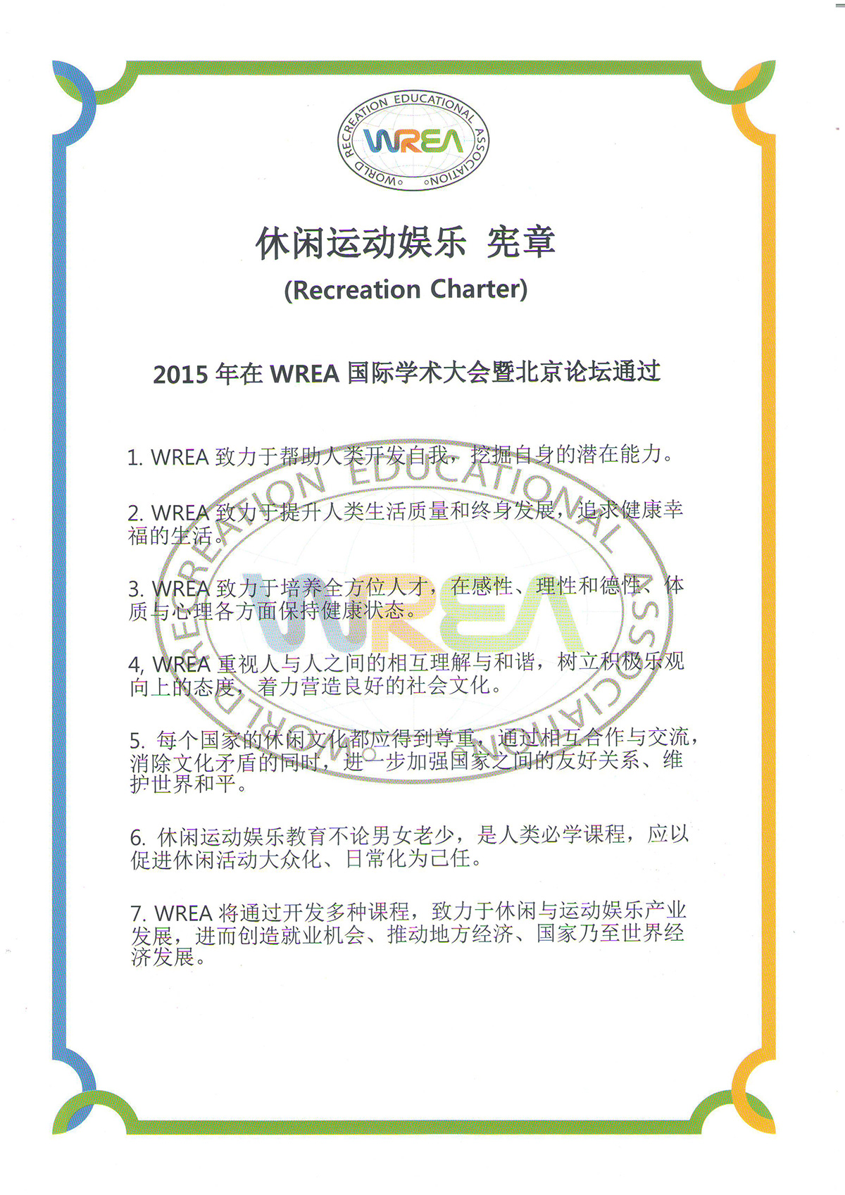 Recreation Charter : Adopted at the 2015 WREA World Congress and < 国际交流活动 < china
