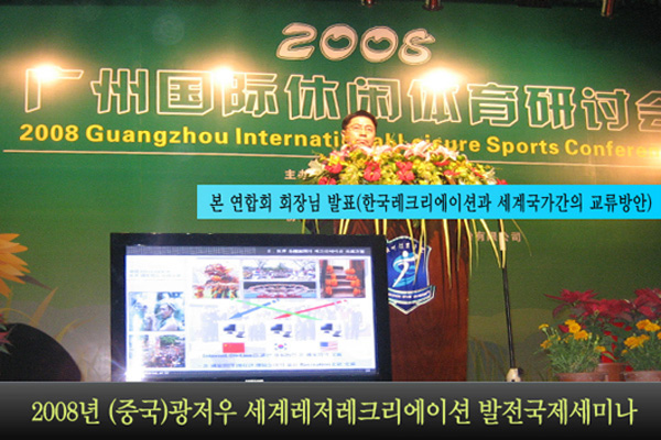 -为申办2010韩国春川World Leisure大会展开活动,李榮基总裁会见World Leisure官员,本协会教师的笑演出与文娱活动指导