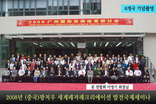 중국(광저우)에서 세계레저레크리에이션 발전국제세미나를 성대하게 끝마치고 기념촬영 - 본 협회 이영기총재
