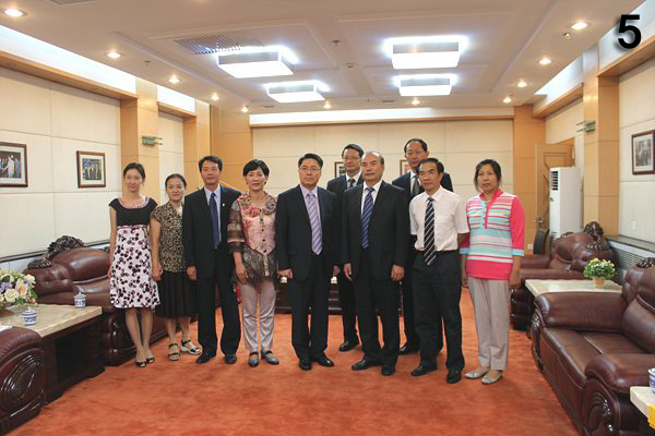 (이영기 본 협회 총재, 이홍강 총장겸 당서기, 왕푸 부총장, 곽금실 이론학부 주임, 이상여 레저스포츠학과장)