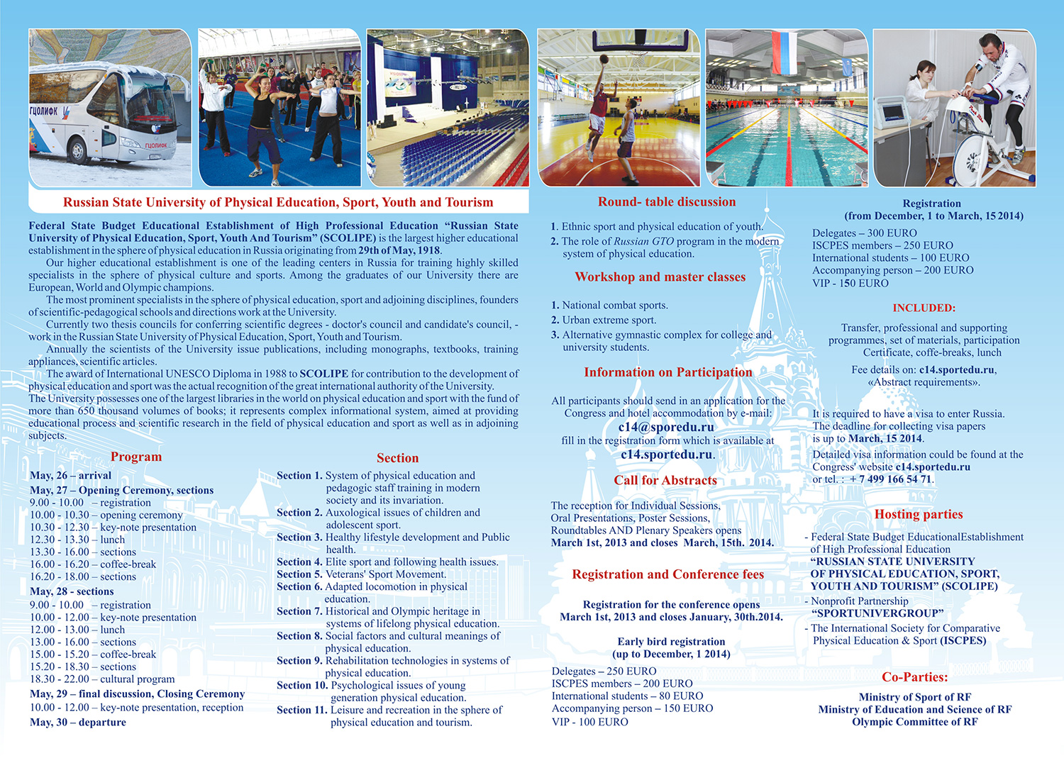 The university has a long history and a great reputation and the ISCPES International Conference will be held at this university on the 26th through 29th of May. As the conference includes a leisure sports and recreation section and the conference will have time to discuss Sochi Winter Olympics, I want people related to the WREA to participate in it.